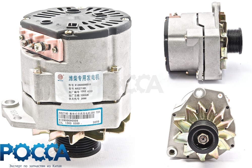 Генератор переменного тока для двигателя WP10 SHAANXI (Шанкси) SHACMAN (Шакман) F3000, артикул 612600090506. Обеспечивает зарядку аккумуляторных батарей и питание бортовой электросети грузовика. Монтируется на кронштейне двигателя WP10 с приводом от поликлинового ремня. Представлено в каталоге ГК Росса (Новосибирск), доставка по всей России.